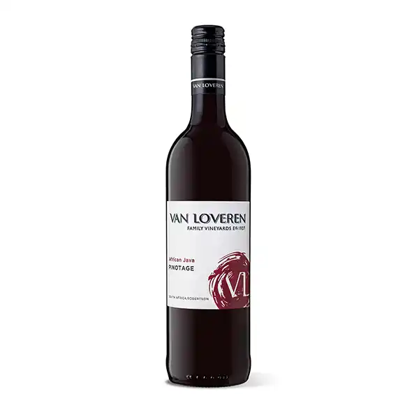 Discover the bold flavors of Van Loveren African Java Pinotage, a South African classic with a unique twist. This award-winning wine is oak matured with added roasted coffee beans, creating a smooth, smoky character with hints of mocha, chocolate, and ripe plum.